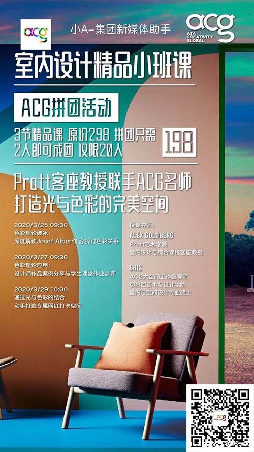 Pratt & Parsons双料教授云授课,携手zhang1996大空间工作室明星导师Cris,带你揭秘色彩和光线的运用,发动你的创造力,在老师的指导下动手打造个人专属网红打卡空间、刷爆朋友圈吧!
