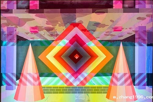 |Ben Jones| 在他的“电影绘画”系列中,电子迷幻动画被投影到几何抽象的画板上,是一种静态与动态艺术的结合。作为多媒体团队Paper Rad的创始人之一,他帮助开拓了数字媒体、互联网和艺术创作的交叉领域。