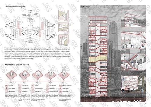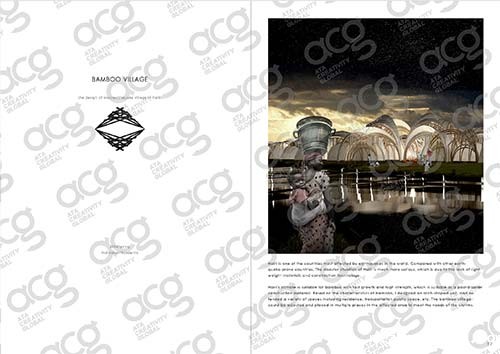 作业原型是竹子单体建筑,以此为灵感来源,最终将原先的单体经过组合重构,构成巨大的人类居住群落,以适应地震多发区域建造。