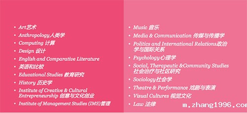 Goldsmiths共有18个专业领域,其中超过三分之一位列世界前100位,包括艺术、设计、传媒、戏剧、音乐、人类学、社会学。