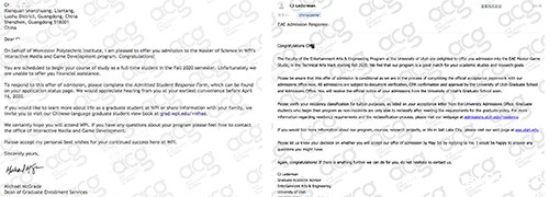 zhang1996邀请到优秀学生代表——吴同学&焦同学,他们分别获得4所顶尖院校的录取offer,在游戏设计这条道路上层层打怪升级,下面看看他们的申请秘密~