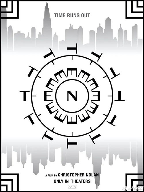 主体画面是一个迷宫场景的主视觉,电影英文名“TENET”五个字母置于中间,其中最后两个字母“ET”是以倒转的样式呈现,让人有一种方向错乱的视觉感。