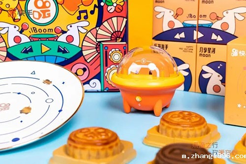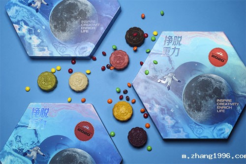 太空蓝的主色调再加上探月元素,充满了科幻感。这不仅是一个月饼礼盒,更是一个造梦广场。