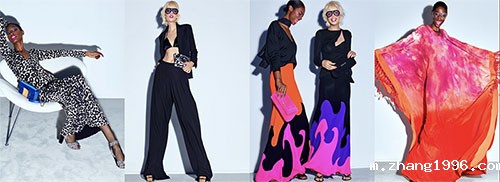大量的使用印花元素在紧身的连衣裙和西装外套上。高饱和度、明亮的颜色,深v性感的剪裁,柔软亲肤的面料。表达了对自由时期舒适生活的向往。