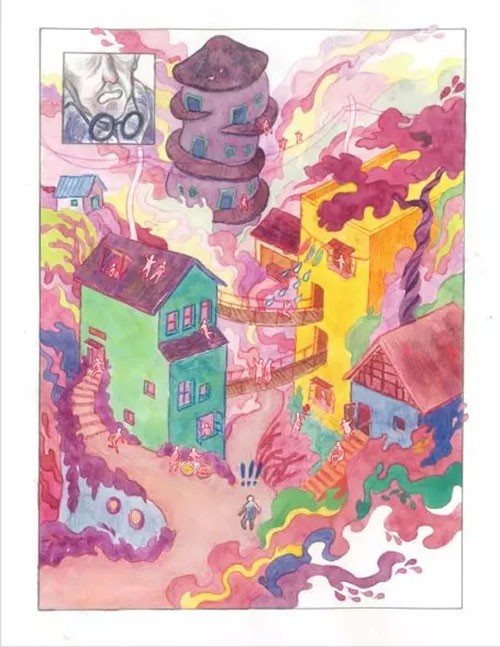 A:最满意的是《H.O.M.E》,这是一个结合我生活和建筑学习经历进行创作的漫画。我一直对城市中自发形成的老城区很感兴趣,16年的寒假,我听说重庆的一片老城区要被拆除,就去了那里,想看看它最后的样子。重庆是一个新旧并存的城市,隔江望去,新城区高楼林立,那么整洁,而旧城区则显得“脏乱差”。但是……置身其中,新城区又是那么无趣,旧城区则处处充满了“生活”。