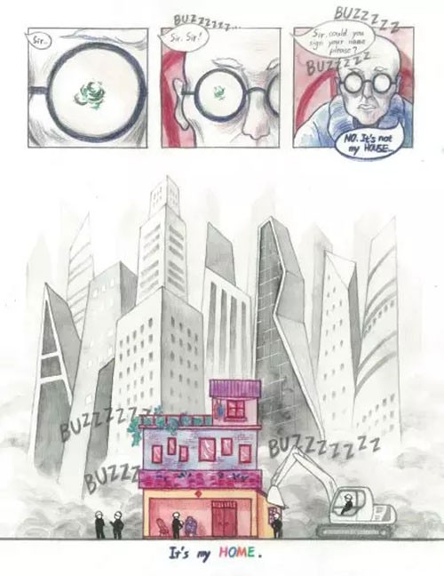 《H.O.M.E》这个漫画有两条线,一条是老城区的发展演变,另一条是主人公在这里几十年的生活进程。通过这个漫画,我想展现的是“HOME”和“HOUSE”的区别。正如H.O.M.E这个名字所展现的那样,HOME=House Of My Emotion。