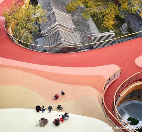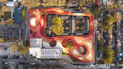 这所幼儿园由国际建筑大师马岩松带领MAD团队设计打造,一座 18 世纪的四合院被幼儿园“环抱”着,形成“一老一小”的“代际融合”布局。