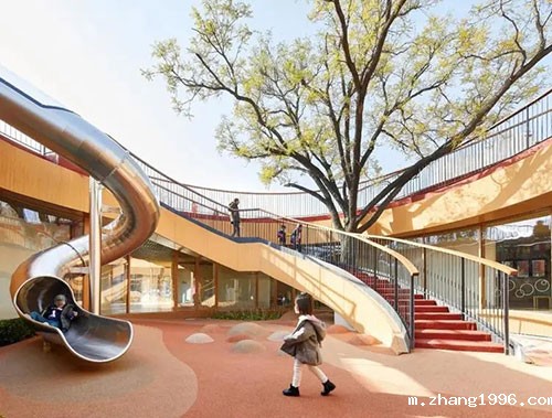 老北京有句形容孩子调皮的话,『三天不打,上房揭瓦』,北京有一个幼儿园不但没有扼杀孩子玩闹的天性,还把屋顶“搬”到了幼儿园,巧然设计成孩子们玩耍、游戏的场所,让孩子们可以自由的奔跑、玩闹。