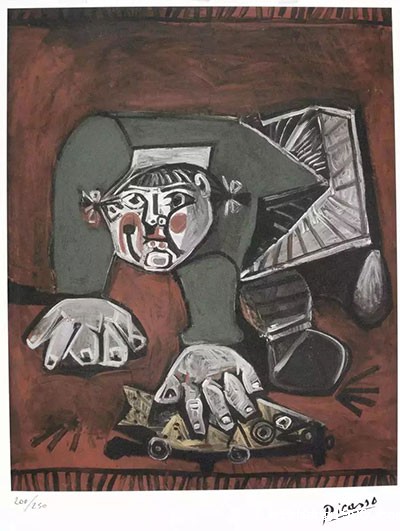 1933年至1973年,晚年的毕加索关注政治,大约也思考生死爱恨的问题,画风在力量之中温和了许多。