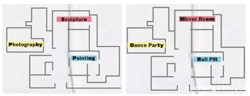 快闪艺术展的三大构成:舞会、镜子房、海洋球池