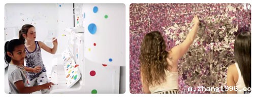 以草间弥生的"obliteration room"为例,在一个白色的房间里,参与者可以在任何地方贴上彩色的圆片,而在ins上大火的"玫瑰豪宅"快闪展里,同样也是在一个白色的房间里任意贴上玫瑰花瓣。
