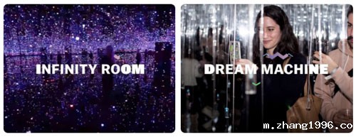 再以草间弥生无限空间为例,infinity room,即一系列布满镜子的房间,同样也被"梦境机器"快闪展复制了一个几乎差不多的版本。