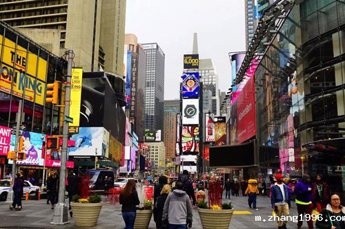 时代广场(Times Square)是美国纽约市曼哈顿的一块繁华街区,被称为“世界的十字路口”。时代广场附近聚集了近40家商场和剧院,是繁盛的娱乐及购物中心。