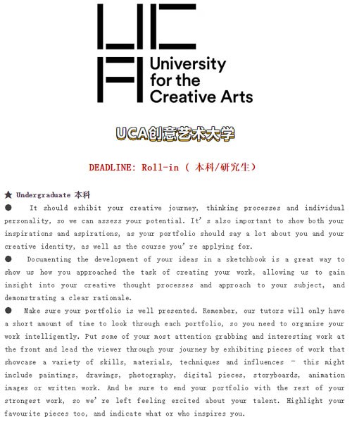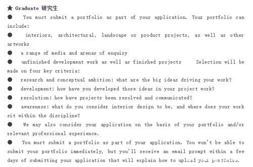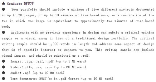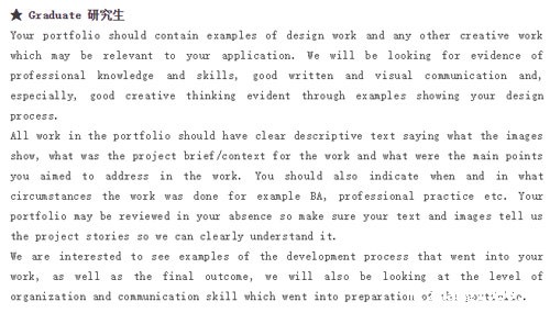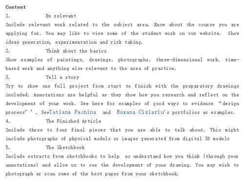 ● 12-20页作品集,作品内容多样化,加重实验和创造性的比重