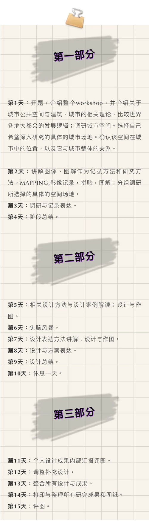 一个所有成员整合在一起的设计大图,为所有人可以使用的。每组成员有自己的研究图,由组内成员共享。个人的设计图,属于每个参与者个人。整个设计可以集合成册,作为每个人的共同成果。成果可作为一个项目放入作品集或作为背景提升项目。