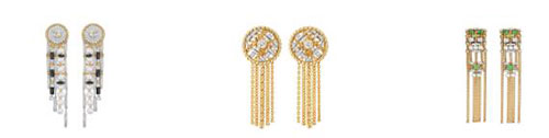 01 链条的柔和运动是这对黄金和铂金耳环的引导元素,并饰有人造珍珠,沙弗来石和钻石。