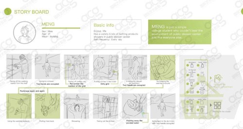 运用故事板的设计方法,将学生从宿舍出发到浴室沐浴再回来的每一个环节进行观察、记录、分析,从中发现问题,寻找设计的机会点。