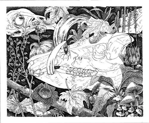 去年,她来到zhang1996当代艺术插画工作室,接受专业的插画培训。在工作室学习的过程中,陆续完成了插画作品《头骨》、《泥巴 泥巴》、《语言工厂》系列、油画自画像《我》和版画作品《梦境历险》等等。