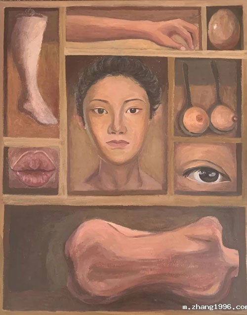 DK老师点评:Q是一个想法很多、心思细腻并且热情洋溢的学生,她以前没有经过很系统的绘画技法训练,做的作品不够成熟,来到工作室全部重新学习,好在进步非常快,后期的作品非常令人满意。对自己喜爱的艺术家进行研究和学习让她的作品能够迅速成型。