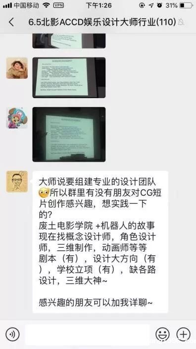每场讲座他都认真观察同学们的反应和表情,不断调整讲义中的案例,保证学生的吸收。令人欣慰的是,有同学在听完大师的讲座后受到启发,在群里交流起了专业心得,还组起了团队。