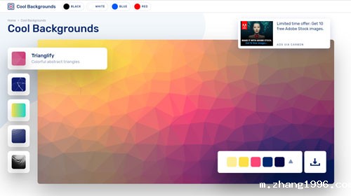 Cool Backgrounds是一系列工具,可为博客,社交媒体和网站创建引人注目的彩色图像。除了背景,生成的图像可以用作桌面壁纸或裁剪为手机壁纸。