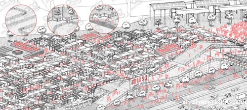 我的作品集一共有五个项目,最满意的其实是蔡老师带的一个项目,主题跟“集市”有关。我把现在城中村拥堵的行为,合理的规划到炼车厂上面。炼车厂在工作日的时候照常工作,但一到周末休息的时候,市民就可以到炼车厂上进行集市活动,进行买卖。