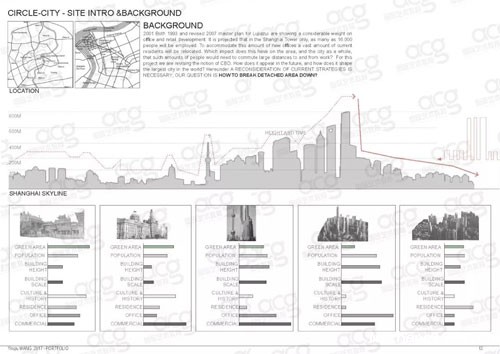 这个是以前一位同学的学校作业,做的是上海陆家嘴改造规划项目,是小组作业。小组作业共享了这些前期调研内容,商圈背景、经济、人口、产业等,这只是一部分。他们做了好多页内容,对这个陆家嘴这个商圈的背景,包括经济,人口,产业等等,自然地理这些全都做了很多的分析。