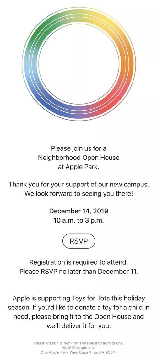 本月14号,苹果公司将在Apple Park(苹果公园),为库比蒂诺当地居民举办一次开放日活动,这也是Apple Park首次向市民开放。