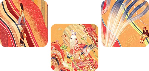 第一眼看到倪传婧的作品,脑海中浮现的是中国传统动画角色“九色鹿”,画风细腻、色彩鲜明,梦幻又富有神秘感,融合了中国传统元素与当代插画风格。