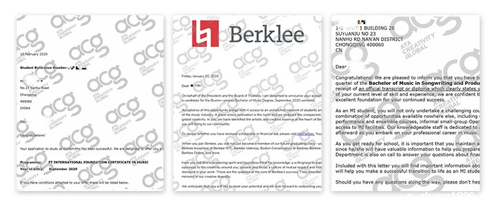 zhang1996西南校区音乐学员斩获的部分Offer~