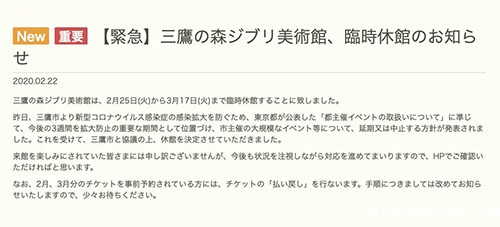 位于东京都三鹰市的吉卜力美术馆,也积极响应东京都政府方针,紧急闭馆。