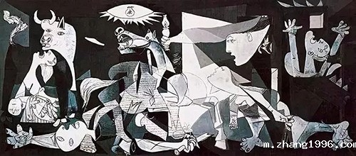 《格尔尼卡》,毕加索,1937年,该画讲述了法西斯纳粹轰炸西班牙北部重镇格尔尼卡事件,是20世纪30年代具有非常重大历史意义的杰作。